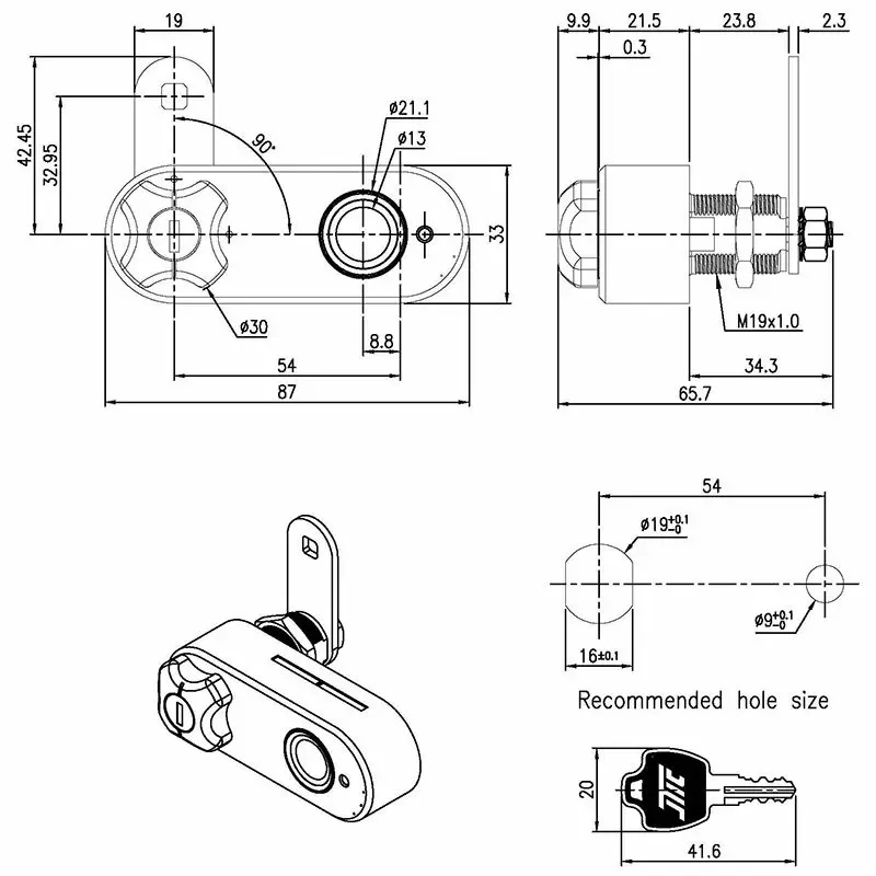 適用於鎖孔直徑19mm的櫥櫃。