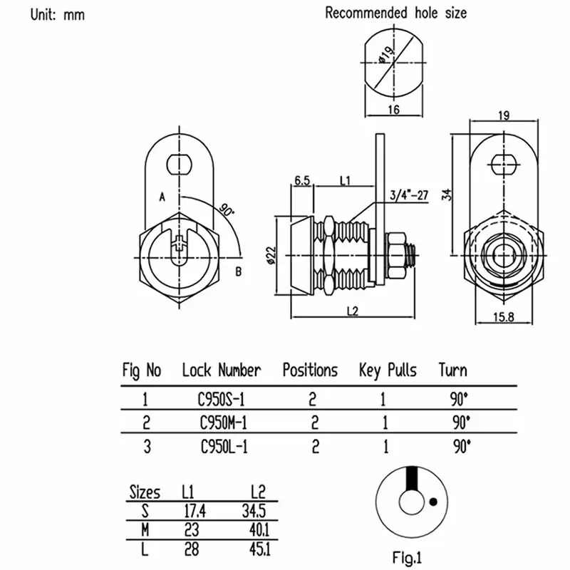 此款高安全性鎖具有隱藏式、防鑽鎖心設計,適合19mm外徑之面板,鑰匙特殊二道插入設計,隱藏式鎖心及防鑽設計,防盜性及安全性更高,屬高安全性鎖,鍍鉻表面處理,10000組號碼變化,附帶銅管鐵質握柄鍍鎳鑰匙易於抽插及轉動,且不易斷裂或損傷。