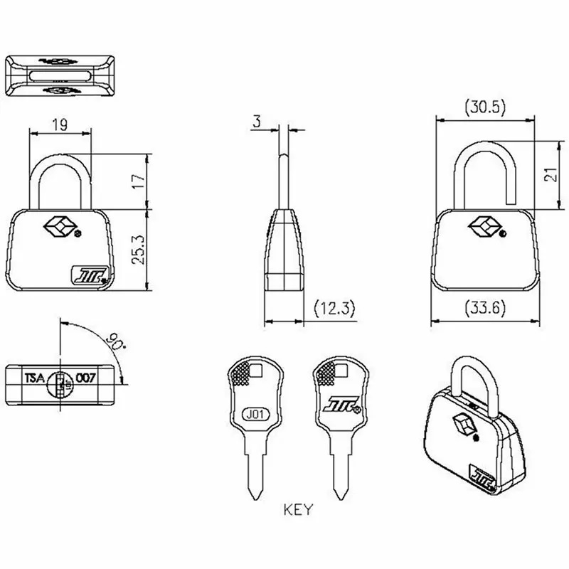 鑰匙型組合的TSA007海關鎖,此鎖亦是經由Travel Sentry單位所認証的掛鎖之一,每個鎖附帶2支鑰匙,鑰匙任一方向插入後旋轉90度即可輕鬆打開扣環,所以不用擔心機場安檢人員檢查行李時會破壞鎖。